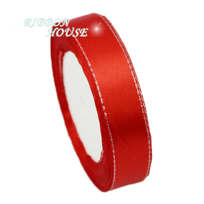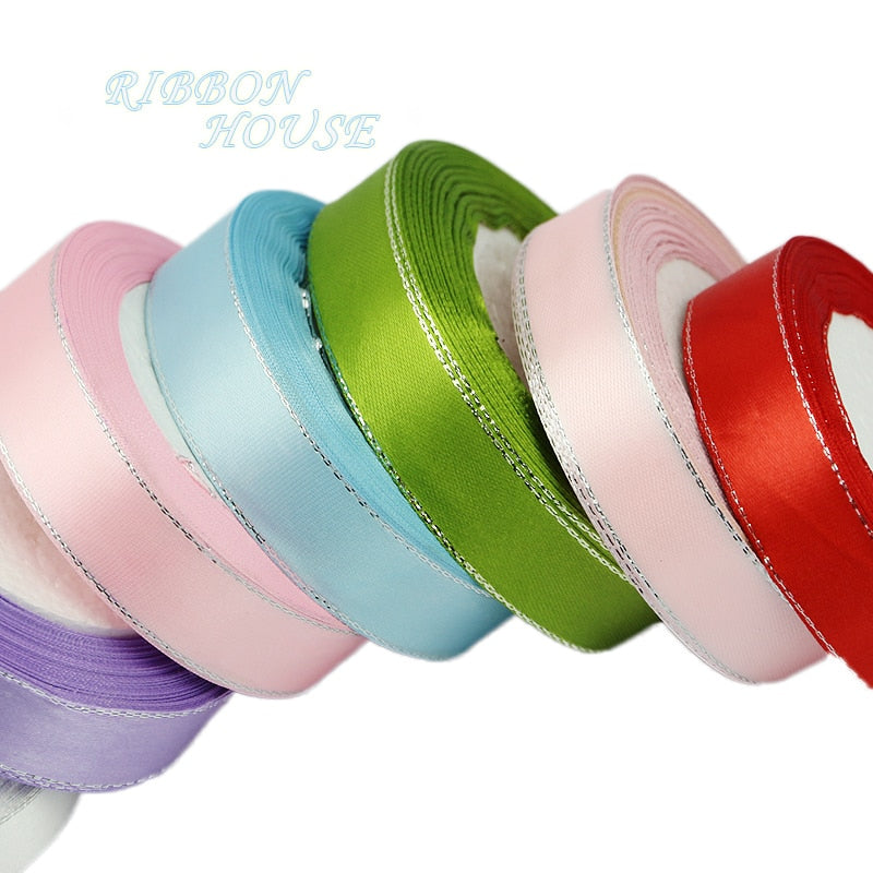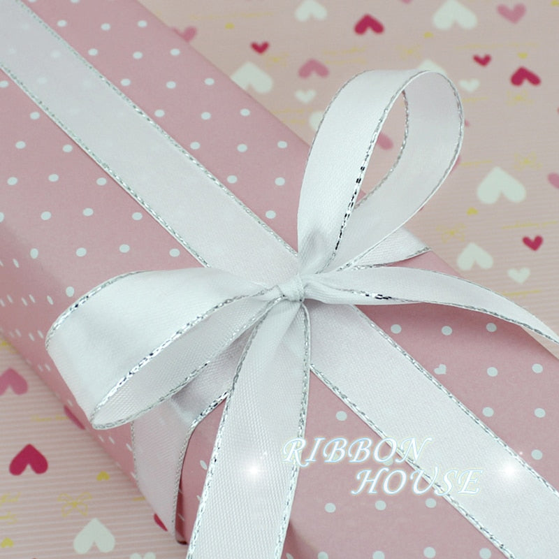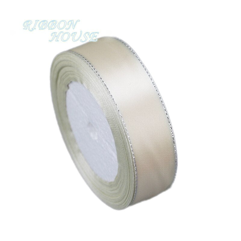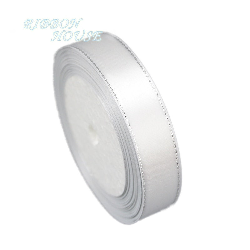 (25yards/roll) White Silver Edge Satin Ribbon high quality gift packaging Christmas ribbons (6/10/20/25/40mm)
