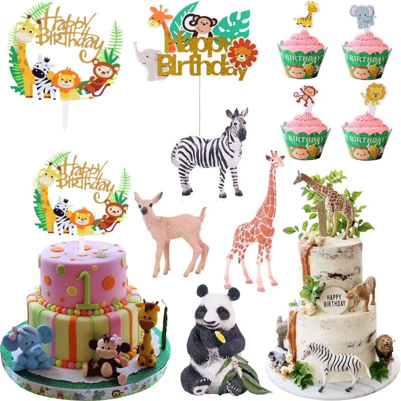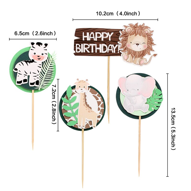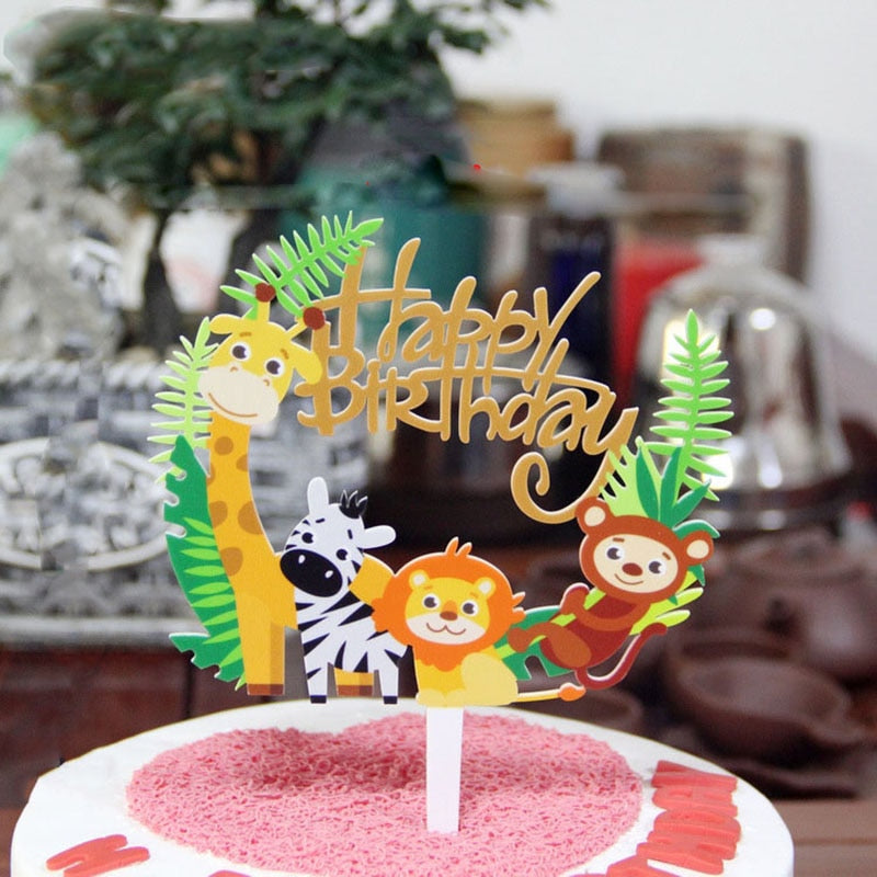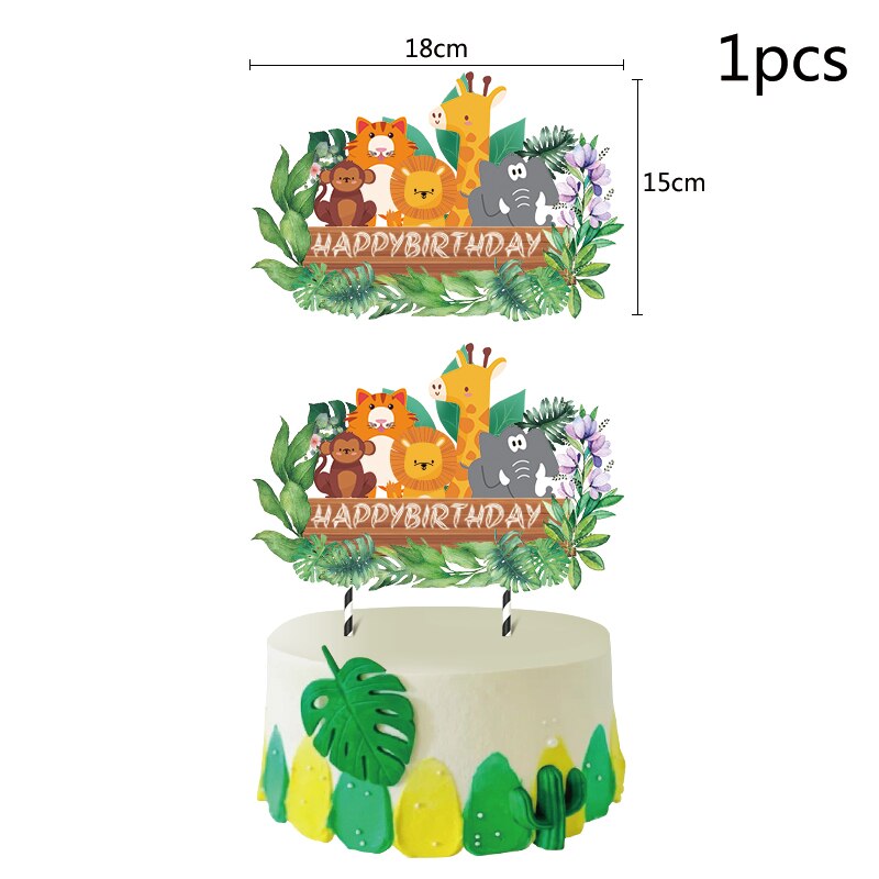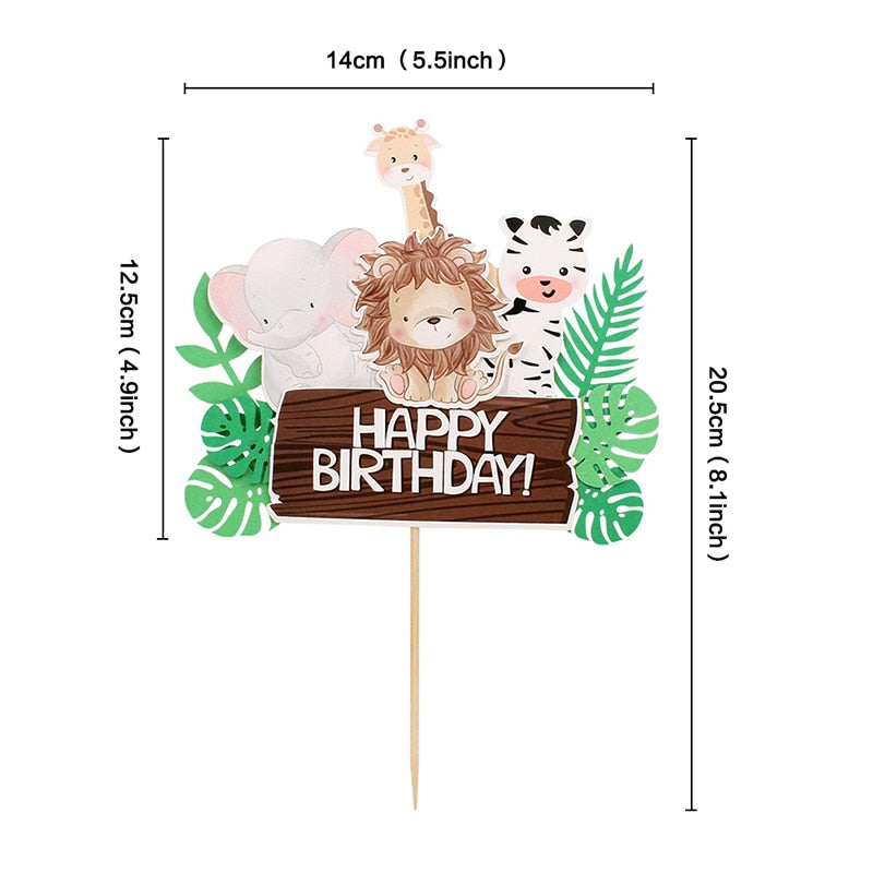 Wild Jungle Party Cake Topper Kids Happy Birthday Animal Cake Flag Boy Birthday Party Decoration Children Forest Party Supplies