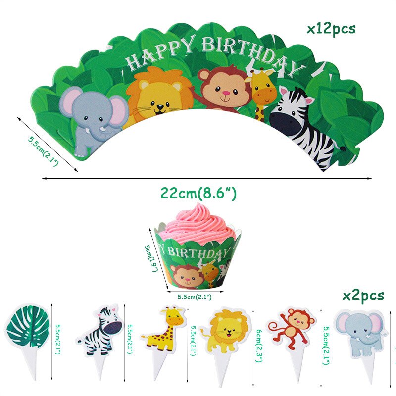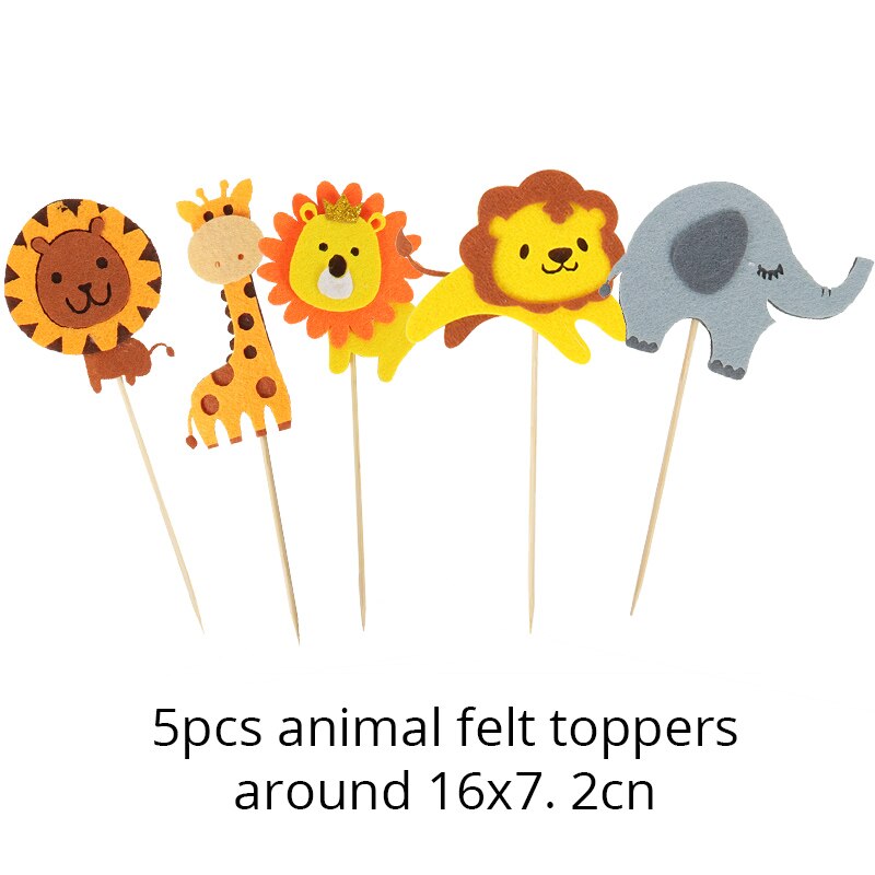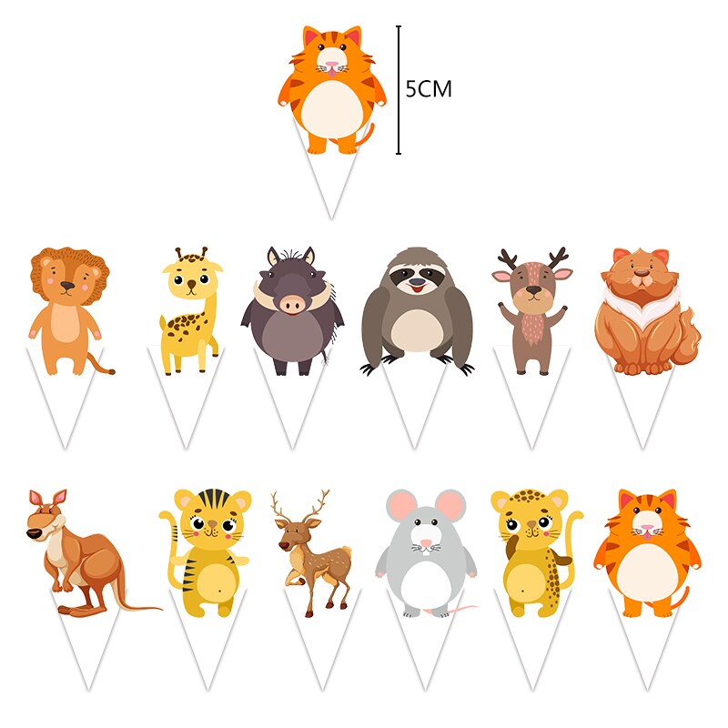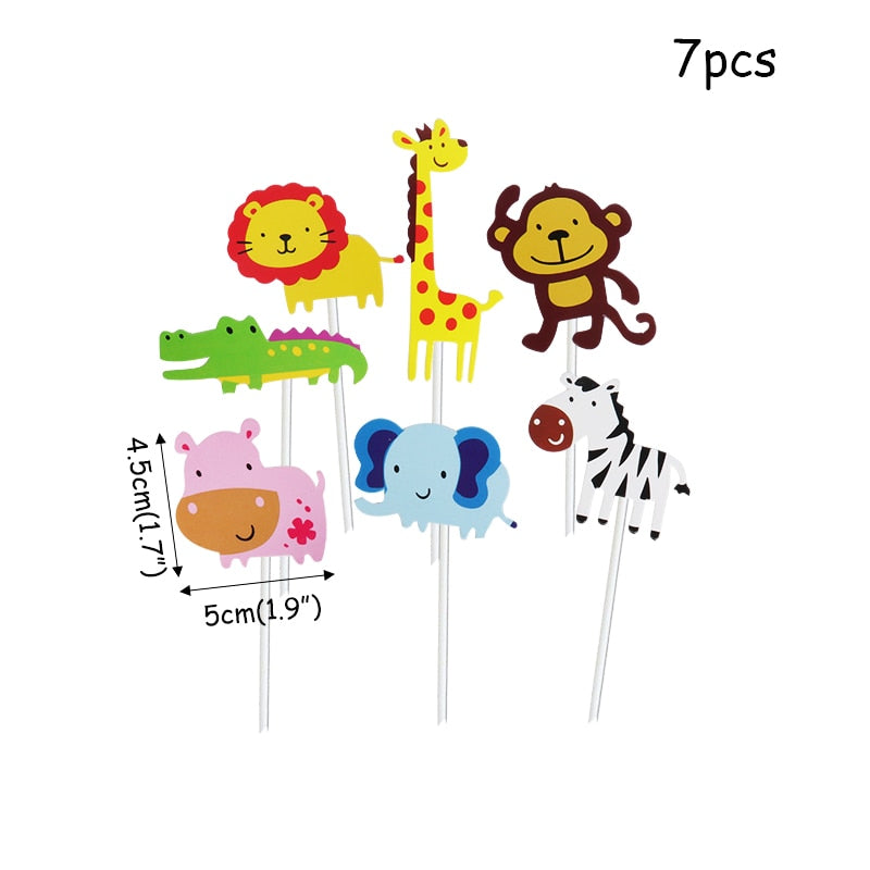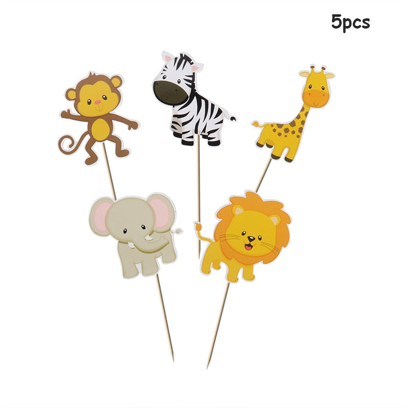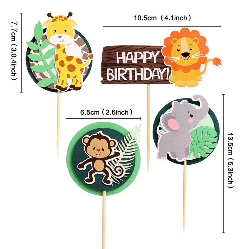 Wild Jungle Party Cake Topper Kids Happy Birthday Animal Cake Flag Boy Birthday Party Decoration Children Forest Party Supplies