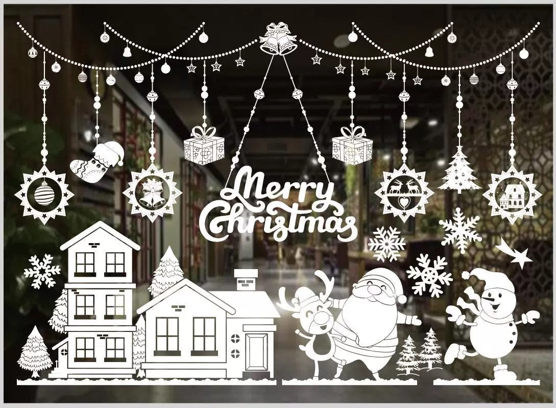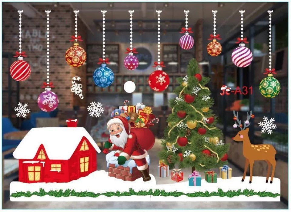 Merry Christmas Decoration for Home =Wall Window Sticker Ornaments Garland New Year Festoon Christmas Decoration Tree
