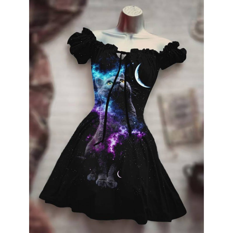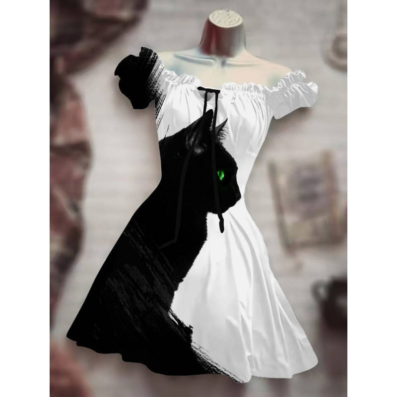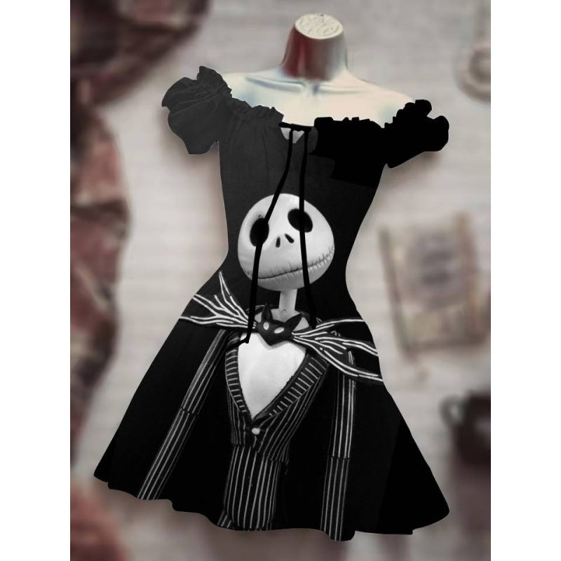Women's Fashion Temperament Commute Halloween Drawstring Puff Sleeve High Waist Dress