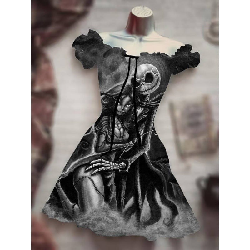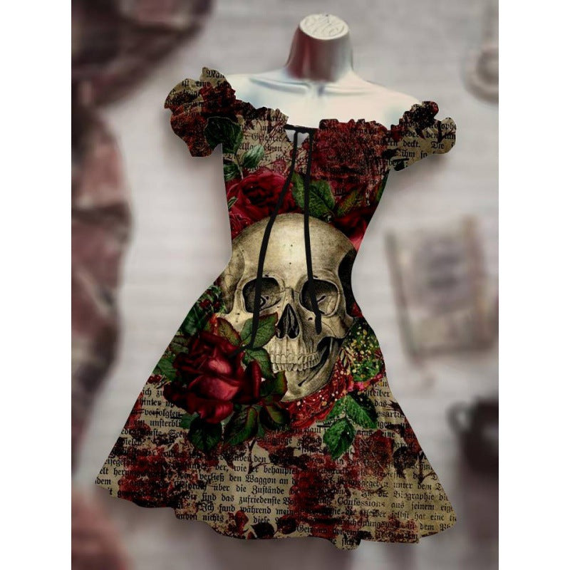 Upgrade your wardrobe today with our Women's Fashion Temperament Commute Halloween Drawstring Puff Sleeve High Waist Dress. Add it to your packing list and get ready to turn heads wherever you go.
