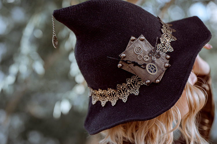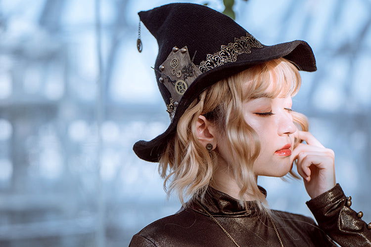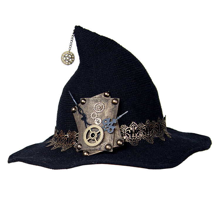 Women's Steampunk Halloween Witch Hat Black Knitted Wool For Party Masquerade Cosplay Costume