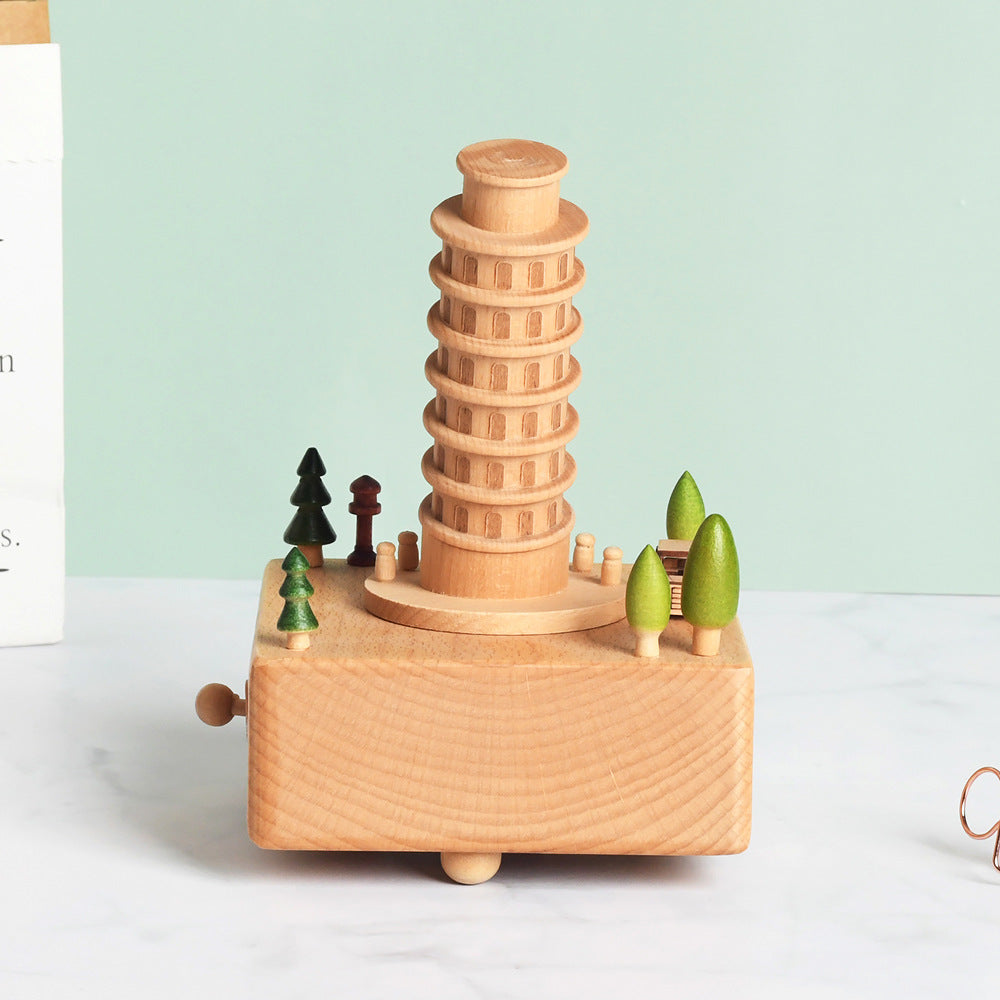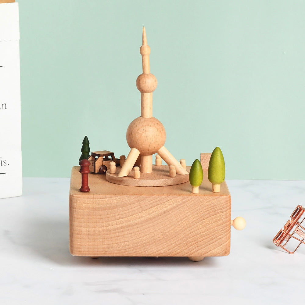 Introducing our exquisite wooden building model music box, the perfect birthday gift for your loved ones. Crafted with precision and care, this music box is made from high-quality beech wood, ensuring durability and longevity. Each piece is meticulously handcrafted, adding a touch of uniqueness to every box.