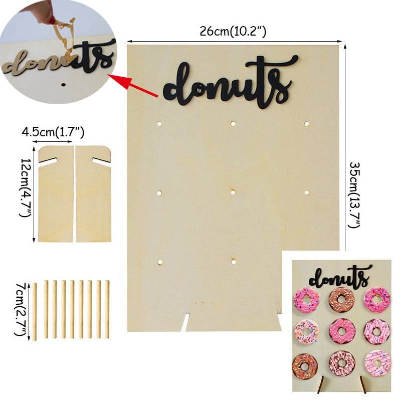 Wooden Donut Wall Stand Doughnut Holder Baby Shower Kids Birthday Party Table Decorations Wedding Favors Mariage Party Supplies