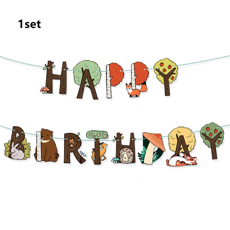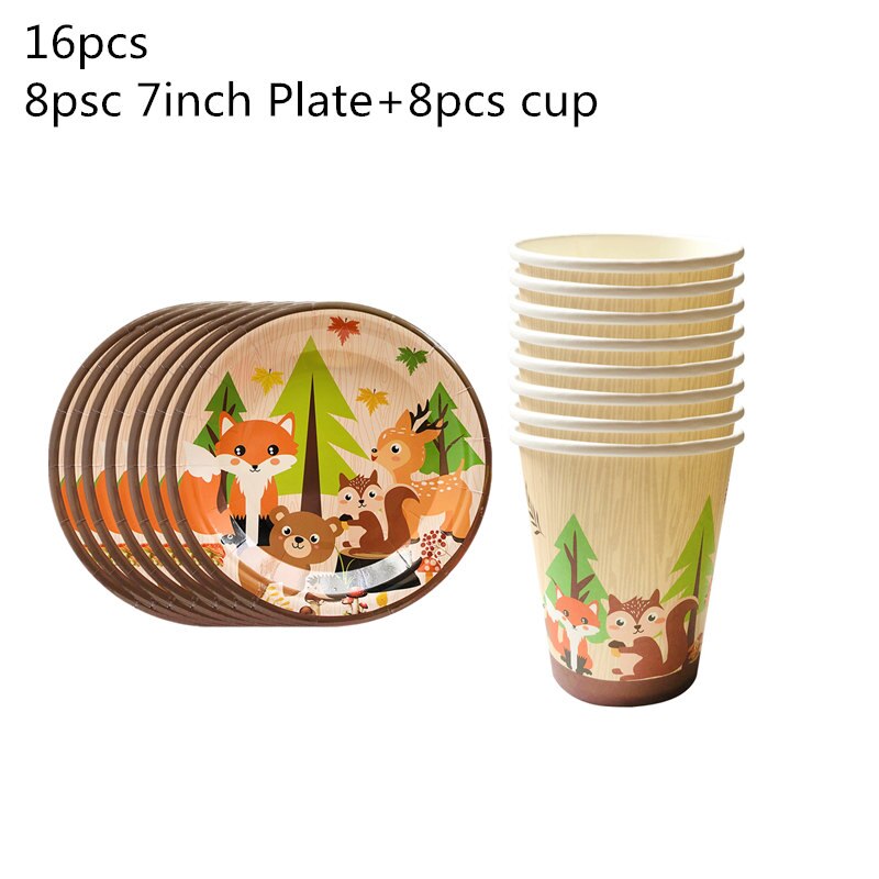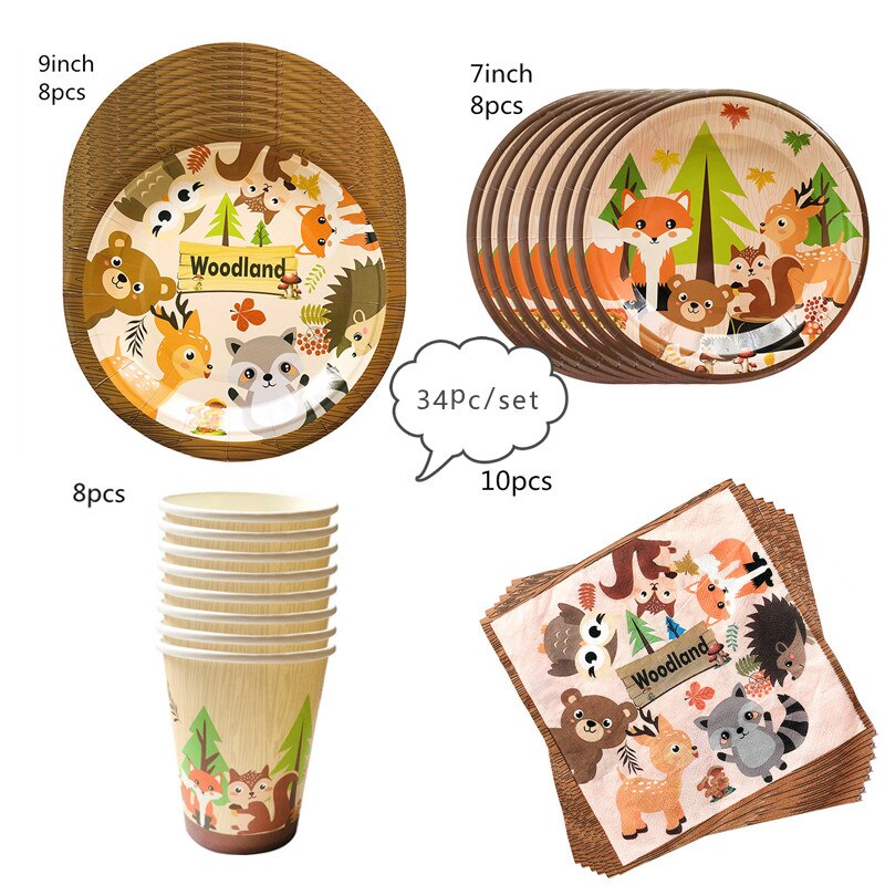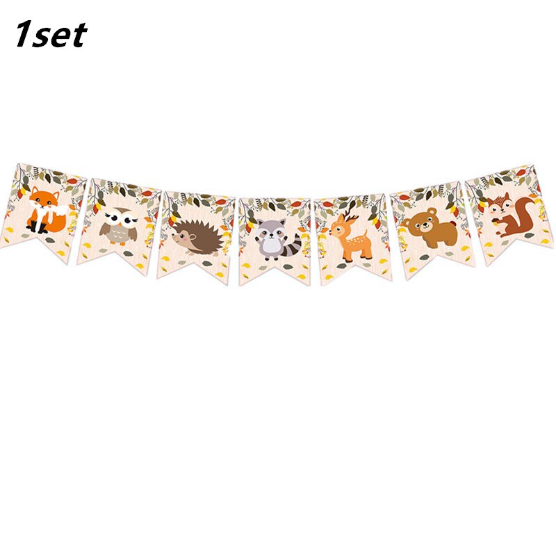 Woodland Tableware Jungle Safari Birthday Decoration Wild One 1st Bithday Party Supplies Forest Animal Paper Plates Banner