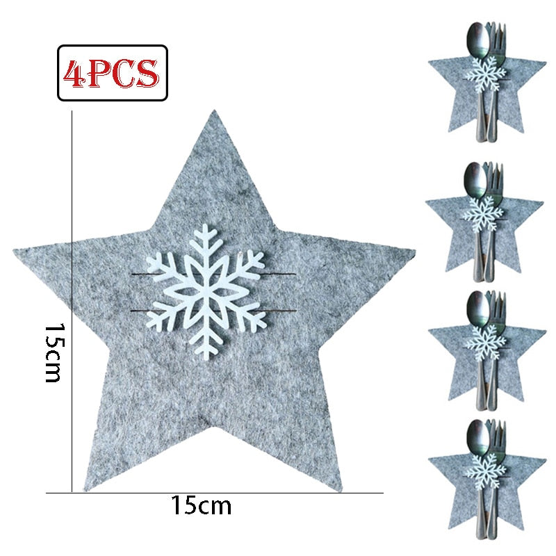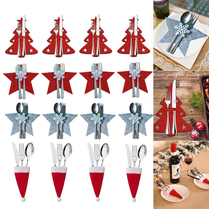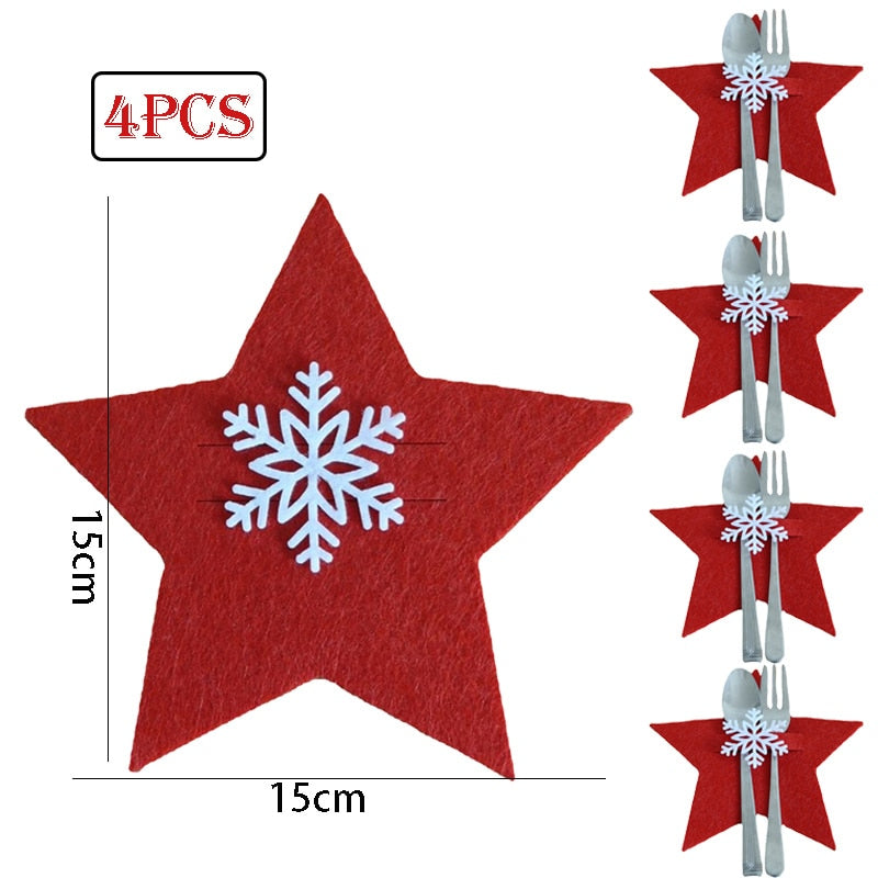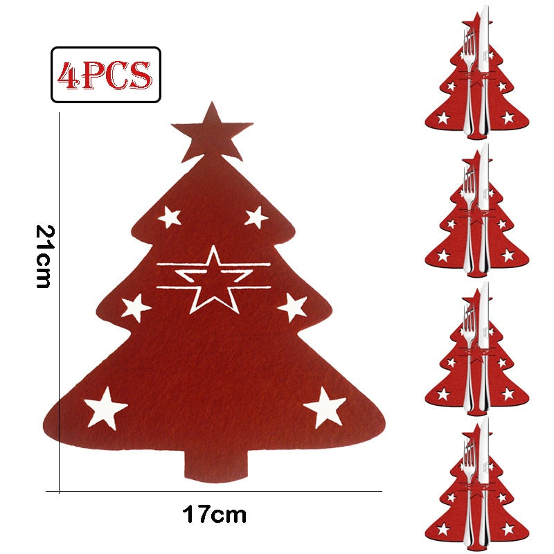 4PCS Xmas Cutlery Bag Knife Fork Storage Bag Christmas Tree Stars Snowflake Xmas Knife Fork Bag Cutlery Cover Table Decoration